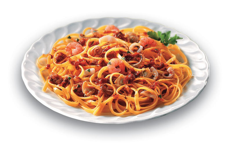 MORDACI LINGUINE MANTECATE CON PROFUMATISSIMI FRUTTI DI MARE, PRONTE IN POCHI MINUTI.PERO PER PEZZO: 300 gPEZZI PER CARTONE: 6